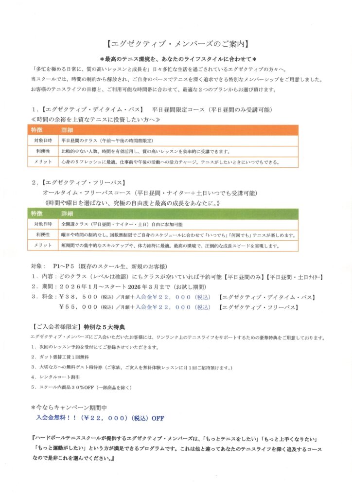 - エグゼクティブ・メンバーズコースを新設